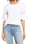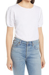 Sometimes even during Summer months, we’ll get cooler days or nights where jeans are a must. Even when going on vacation it’s always a good idea to take a pair of jeans and a jacket. Shirt jackets are so great and very versatile. And this feminine puffy sleeve eyelet top is so pretty and on sale. Find all the details to this chic outfit below.