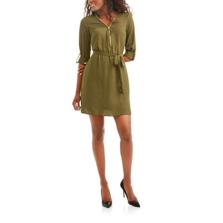 This shirt dress is just too cute. I have one very similar that is stripped and I love it. This one is available in the trendy Fall green color. Great for work or going out on the weekends and so affordable.