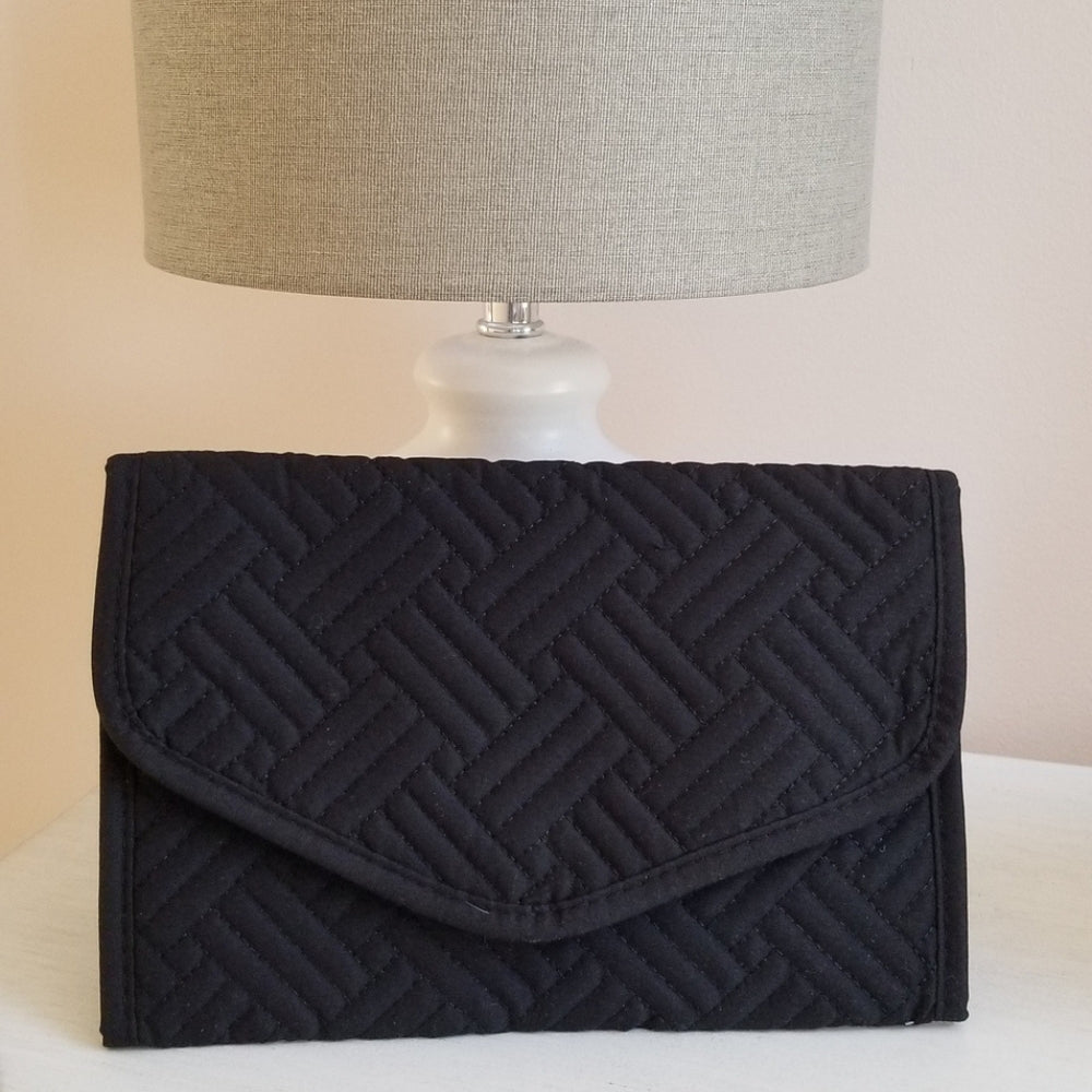* Zippered Sections inside * Size: About 9 x 5 1/2 inches when closed. About 17 1/2 inches when open