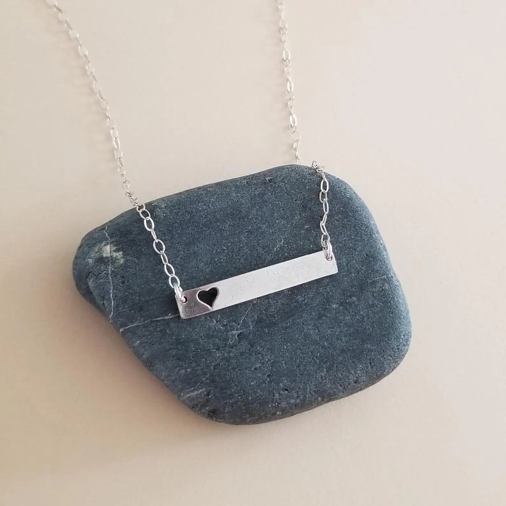 Silver Bar Necklace with Cut-Out Heart – Minimalist and Meaningful Jewelry Gift